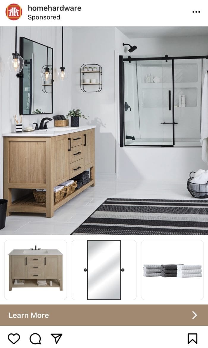 By clicking the collection ad, the user is sent to a full-screen Instant Experience where they’re guided throughout a dynamic funnel of various creatives, descriptions, buttons, and links.