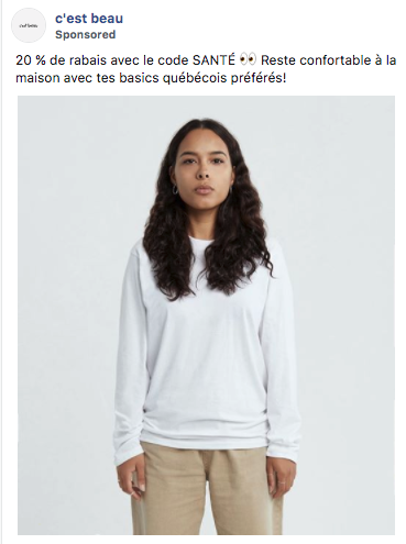 People everywhere are staying home and going out to get the strict minimum. Use this new reality to your advantage and adapt your advertising messages to their situation. In the case of C’est Beau, messages such as “Stay home, we deliver.” or “Stay cozy at home in our clothes” have proven to be very effective.