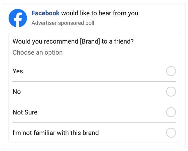 The first poll question was: Would you recommend [brand] to a friend? Yes, No, Not Sure or I’m not familiar with this brand.