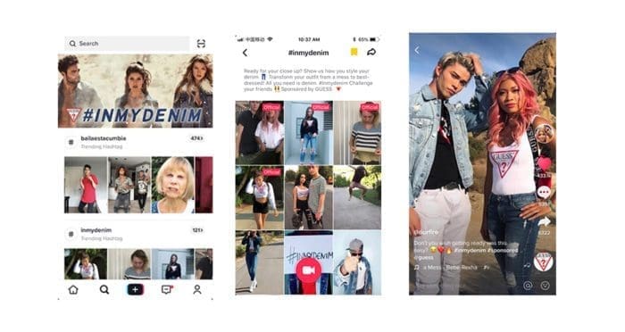 The branded hashtag challenge is showcased on the “Discover” page and works well in combination with brand takeover ads, in-feed video ads, and influence marketing. Featured above is Guess’ branded hashtag challenge in the U.S.