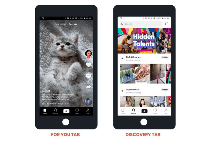 Then, on the “Discover” tab, users have access to popular hashtags and challenges. TikTok’s most popular content includes dances, hacks, DIY, and lip-sync, and more.