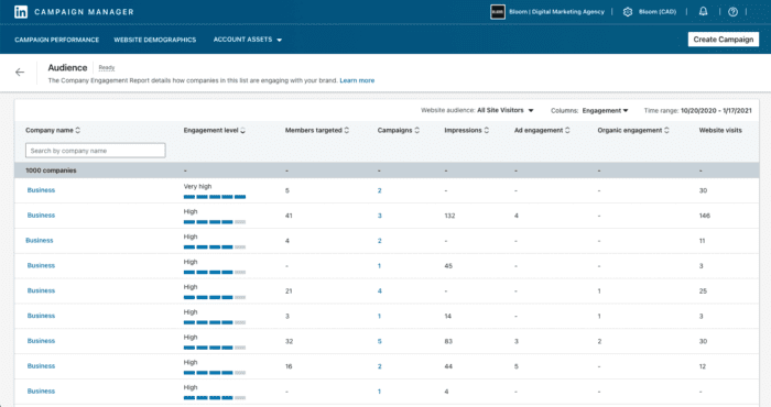 Avec ce nouveau rapport d’engagement des entreprises de LinkedIn, vous pouvez obtenir des informations détaillées sur les entreprises qui interagissent avec votre contenu payant organique sur LinkedIn. Une vraie mine d’or pour un spécialiste du marketing.