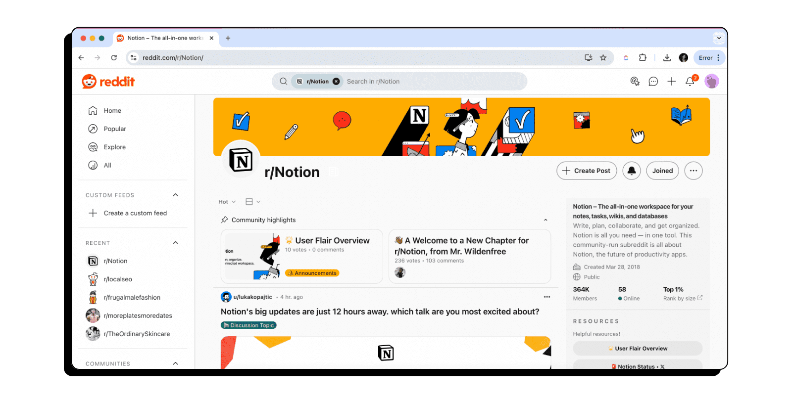 Allez voir le SubReddit de Notion, c’est un bel exemple d’une compagnie qui partagent avec sa communauté sans aller trop loin!