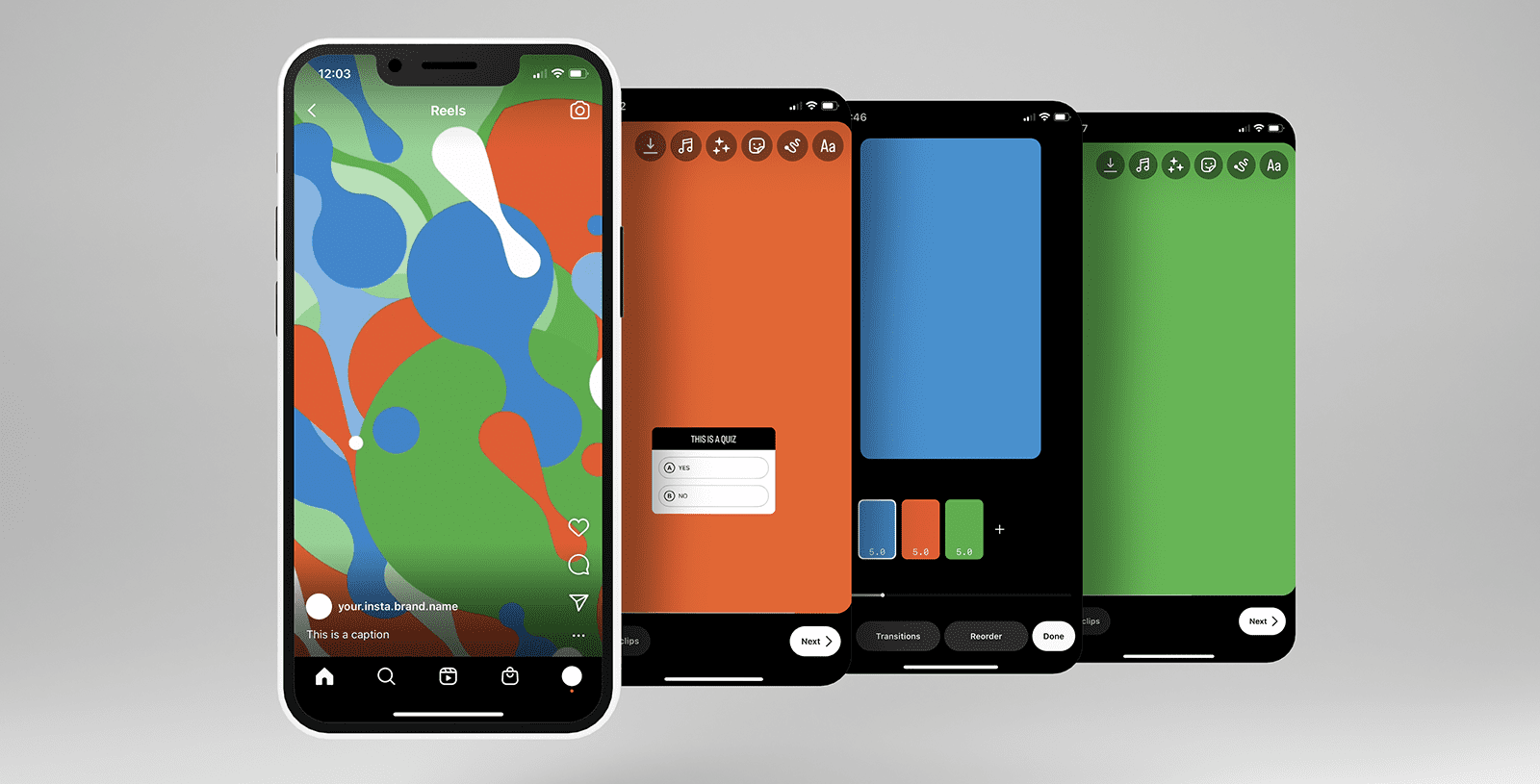 C’est la que le fun commence, c’est le temps de donner vie à votre concept. Vous pouvez soit enregistrer le Reel sur Instagram, en temps réel, soit télécharger une vidéo prémontée.