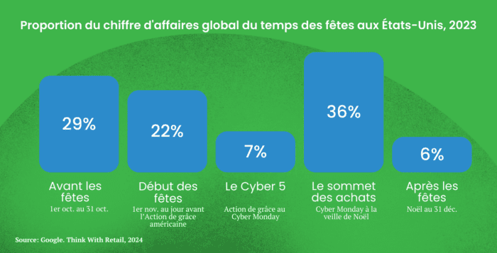 Aux États-Unis, 36 % des ventes reliées au temps des fêtes ont lieu entre le Cyber Monday et la veille de Noël. Alors que le mois de décembre débute, de nombreux acheteurs n’ont pas encore effectué la moitié de leurs cadeaux de Noël. (Google)