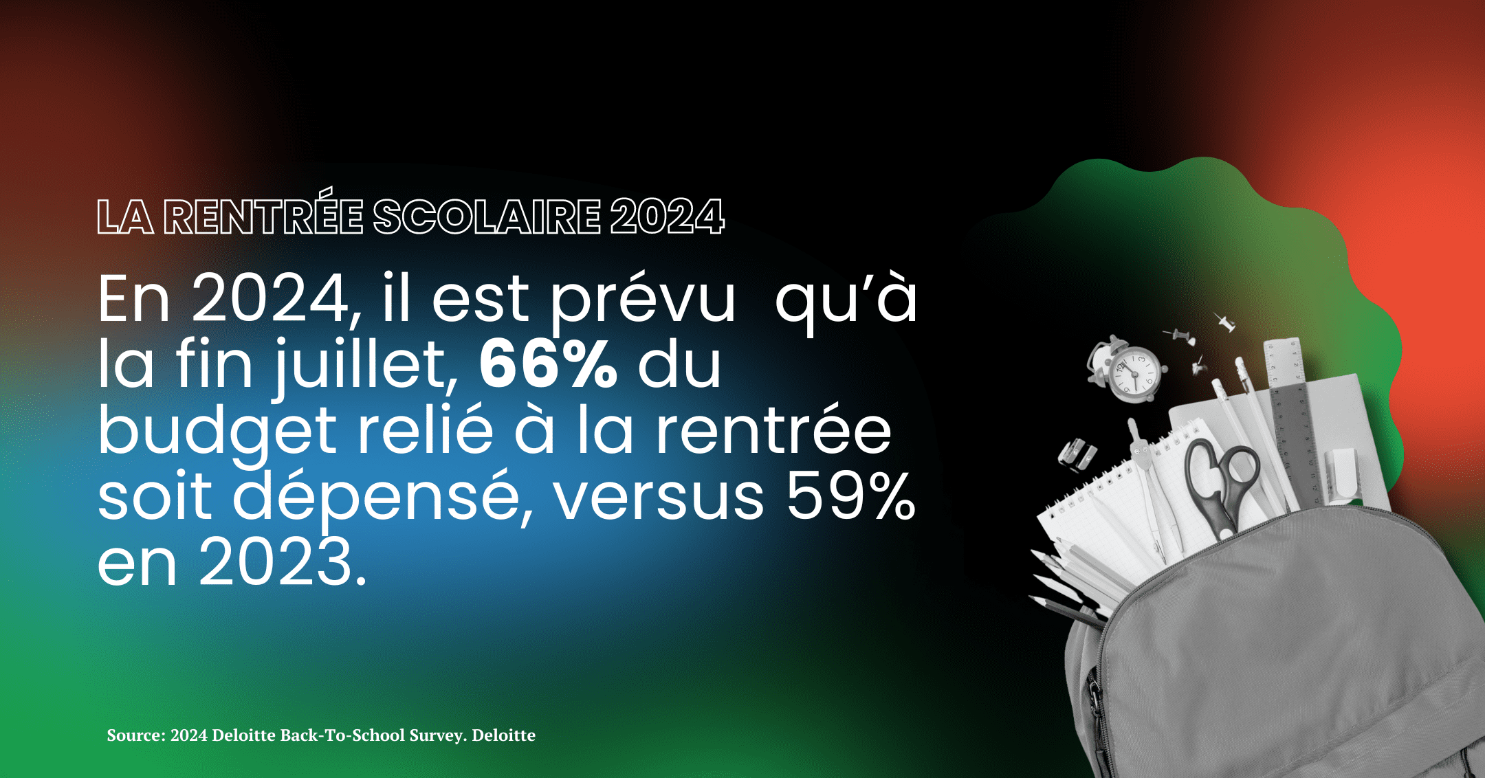 Les consommateurs sont de plus en plus prévoyants. Ils commencent leurs achats pour la rentrée dès le début du mois de juillet et cette période se poursuit jusqu’à la fête du Travail. En 2024, on s’attend à ce que 66% du budget lié à la rentrée soit dépensé d’ici la fin juillet, contre 59% en 2023.